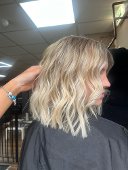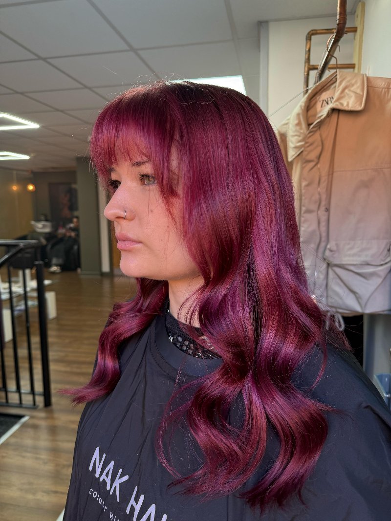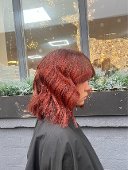 Hi, my name is Lera and I'm a new salon apprentice. I've been doing hair for almost half a year and I'm really into curly blowdries, vivids, creative colour placements and just main character hair. I started hairdressing as new career at the age of 30 after doing my doll customising small business and various customer facing jobs but I am enjoying every second of my journey and I can't wait to meet you!